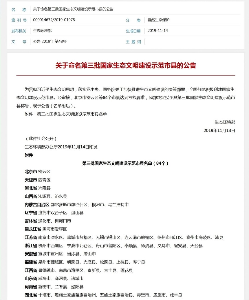 熱烈祝賀蘭考縣成功創建國家生態文明建設示范縣时间:2019-11-15 11月14日,國家生態環境部官網發布了第三批國家生態文明建設示范市縣命名公告,我公司指導的蘭考縣榜上有名!熱烈祝賀蘭考縣成功創建國家生態文明建設示范縣! |