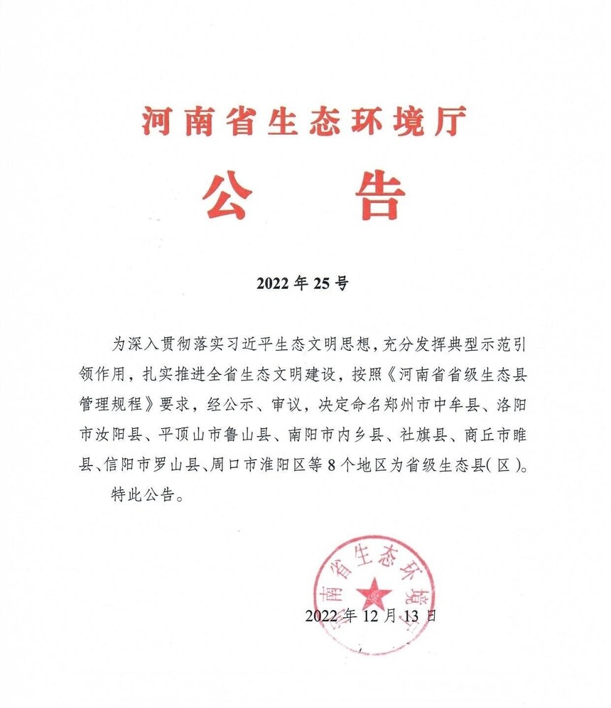 中原水城——睢縣被命名為省級生態縣时间:2022-12-15 12月13日,河南省生態環境廳發布2022年25號公告,命名睢縣為省級生態縣。 睢縣,地處豫東平原、黃淮腹地,隸屬于商丘市,縣城水域面積過萬畝,有“中原水城”之稱。近年來,睢縣堅持“綠水青山就是金山銀山”的發展理念和生態立縣發展思路,促進生態環境治理與資源、產業有機融合,探索走出一條經濟發展與生態文明相輔相成、高質量發展的新路。 在產業發展方面,睢縣是中國制鞋產業基地,實現“中原鞋都”向“中國鞋都”闊步邁進;扛穩糧食安全重任,糧食總產超18億斤,實現“十六連豐”,“老家鄉”成功入選國家品牌戰略計劃,成功創建“河南省農產品質量安全縣”。 在生態環境方面,統籌推進水生態保護、城鄉環境綜合整治等工作,積極破解水污染、垃圾污染和廢棄秸稈焚燒污染“三大難題”,建成全省*新概念污水處理廠、全市*生物質發電廠、全市*垃圾發電靜脈產業園,垃圾處理的減量化無害化資源化模式走在全省前列,被省政府授予“農村垃圾治理達標縣”,新概念污水處理廠被命名為“河南省環保教育基地”。蟬聯“全國百佳深呼吸小城”稱號,入選“美麗中國·深呼吸小城高質量發展實驗區”。 |